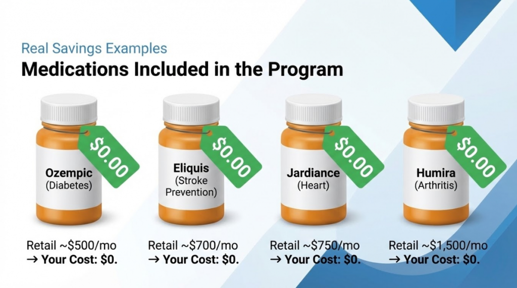 GetSaveMeds.com is not an insurance provider, pharmacy, or government agency and is not affiliated with or endorsed by Medicare, Medicaid, or any federal or state healthcare program. We assist consumers by helping them explore available prescription savings programs and enrollment options. 2026.